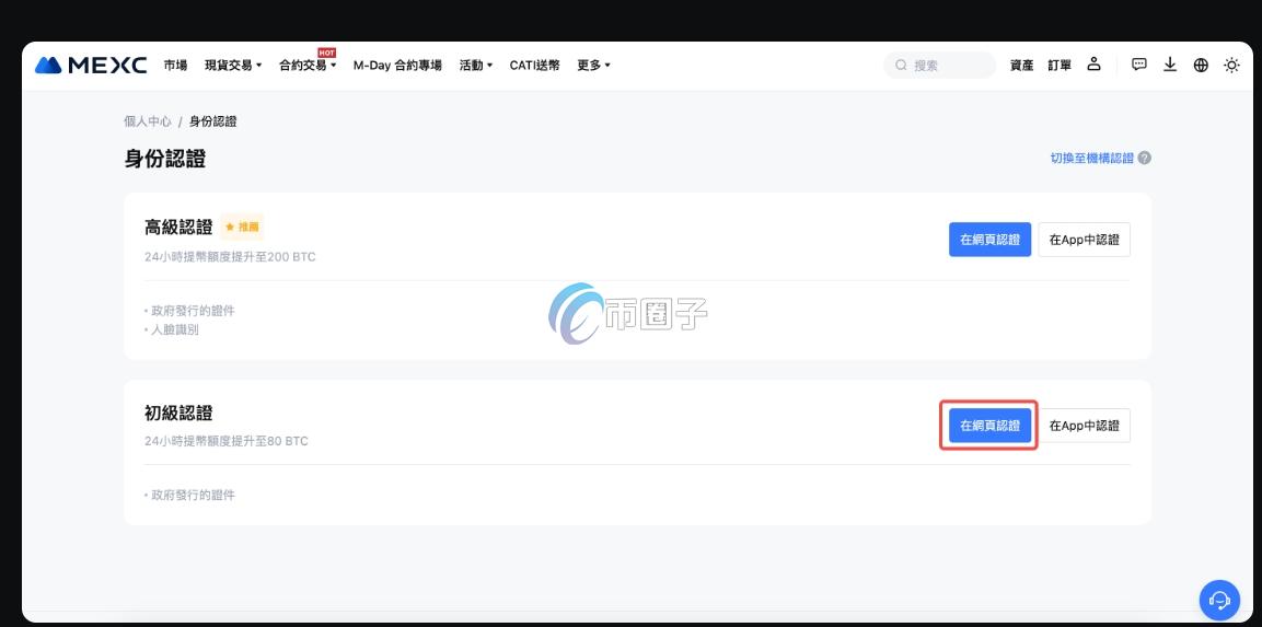 5、选择初级认证,点击【在网页认证】。您也可跳过初级认证直接进行高级认证。